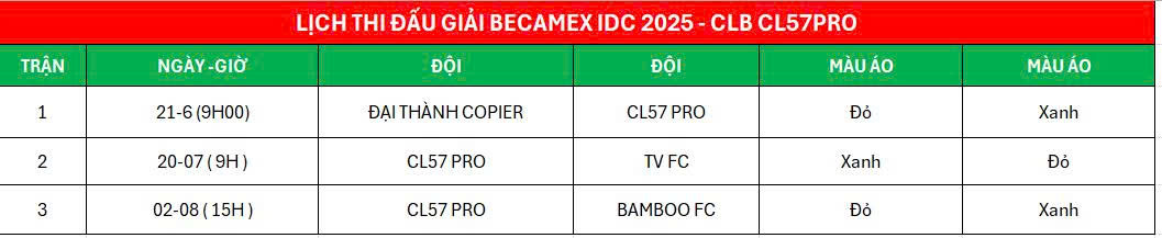 Đặc biệt, việc tham gia Giải bóng đá Becamex sân 11 – một trong những giải đấu phong trào uy tín và có quy mô lớn nhất – đã giúp anh em CL57PRO tôi luyện bản lĩnh. Việc thi đấu trên mặt sân 11 người đòi hỏi thể lực bền bỉ và chiến thuật chặt chẽ, và dù dừng bước sớm nhưng các cầu thủ của chúng ta đã không làm người hâm mộ thất vọng.